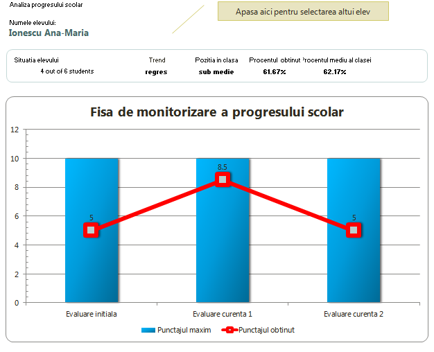 – Fisa de analiza a progresului scolar, atat la nivel de clasa, cat si individual (note multiple)