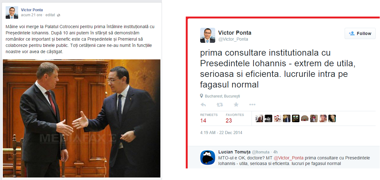 Președintele s-a întâlnit cu premierul Victor Ponta.