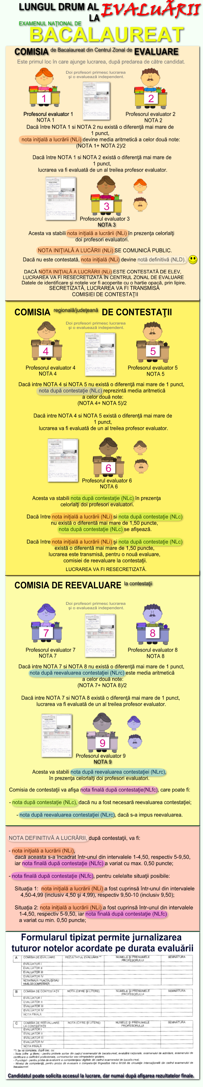 Am realizat infograficul de mai jos pentru a facilita înțelegerea câtorva aspecte mai putin cunoscute din procedura evaluării lucrărilor scrise la examenul național de Bacalaureat.