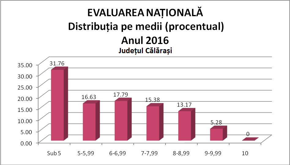 Analizând strict rezultatele Evaluării Naționale, ediția 2016, se constată că aproape o treime dintre elevi nu au putut obține media 5, iar o a doua treime ocupă palierul mediilor mediocre, de 5-6.99.