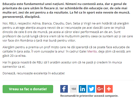 Știu că în ultima vreme se aleargă mult pentru ca profesorii să poată beneficia de aceste șanse. Se pedalează mult. Se fac eforturi mari, fizice și intelectuale, se împart profituri câștigate cinstit, pentru ca ușile comunității să se deschidă în sufletele oamenilor din spatele ușilor școlilor. Profesorii sunt norocoși că energiile curg dinspre comunitate spre școală. Aceste energii aduc lecții importante, comparații utile, vectori de creștere și de progres. Este important ca aceste energii să nu secătuiască. Este important ca un profesor în plus să beneficieze de experiența MERITO.