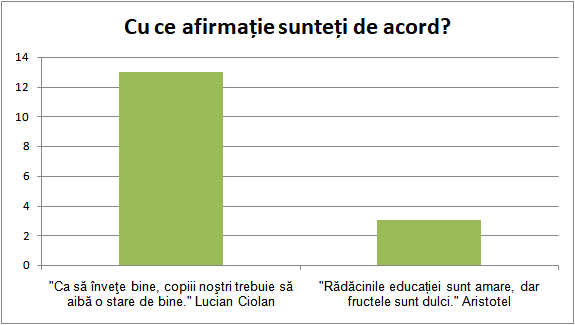 | Sunt adepta relațiilor democratice între elev-profesor-părinte. Deci încurajez comunicarea și libertatea la opinie a tuturor celor implicați în domeniul educației. |