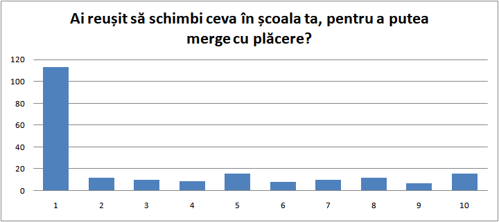 | Spatiile inadecvate, programa școlară stufoasa axata pe teorie, lipsa de relevanta a curriculum școlar pentru realitatea școlară, profesori slab pregătiți, etc. | 1 |