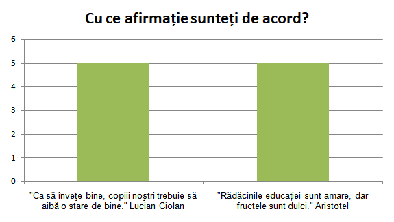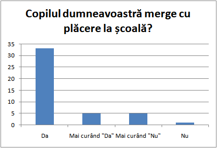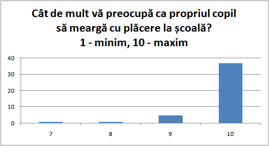 | Îmi place că majoritatea profesorilor sunt bine pregătiți și preocupați de procesul de învățare al copiilor |