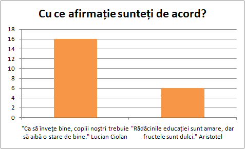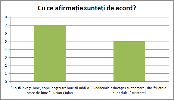 | Imi place ca copiii participa la diferite activitati extra-scolare impreuna cu profesorii. | 1 |