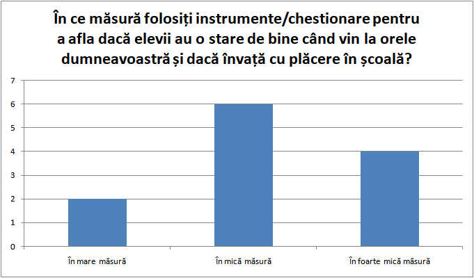 | Tehnologiile moderne din școală (televizor, calculator, proiector, tablă interactivă, aplicații online, manuale digitale etc.) | 8 |