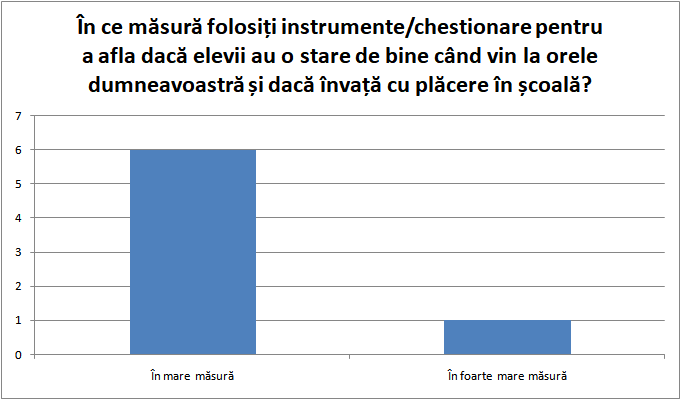 | Tehnologiile moderne din școală (televizor, calculator, proiector, tablă interactivă, aplicații online, manuale digitale etc.) | 6 |