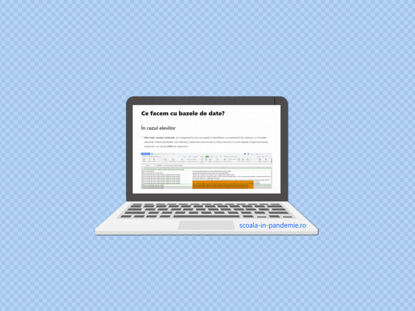 - Mai întâi, căutăm dublurile. Iar înregistrările care se repetă le identificăm concatenând trei câmpuri cu întrebări deschide. Dacă rezultatele sunt identice, înseamnă că formularul a fost transmis identic în mod repetat. După eliminarea dublurilor, au rămas 834 de răspunsuri.