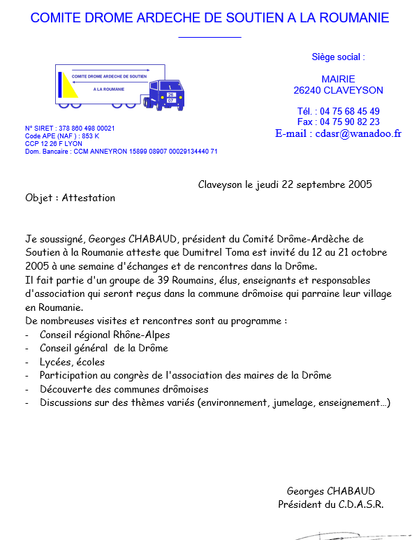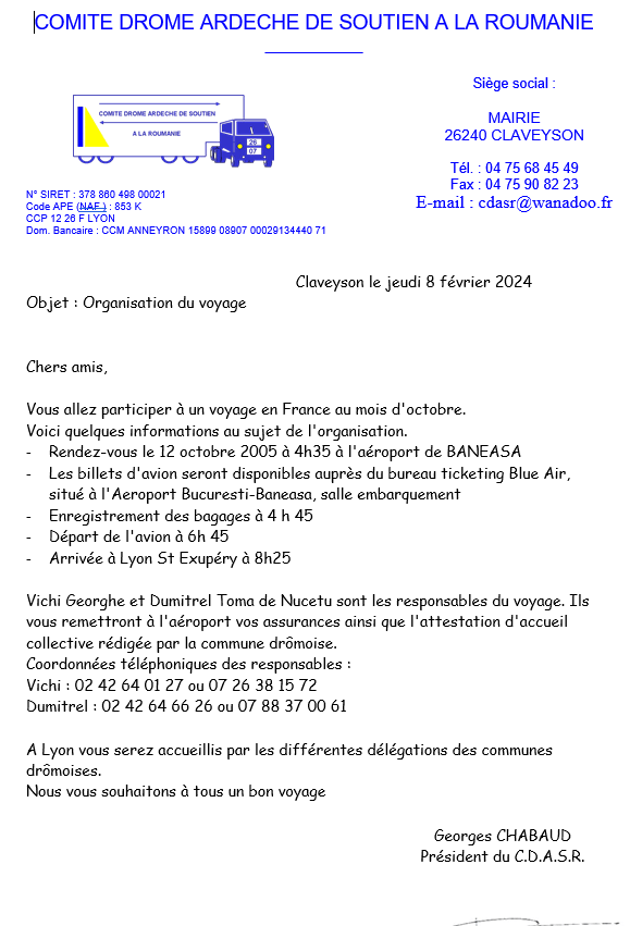 Date | Programme du séjour des délégations roumaines : programme pour Claveyson chauffeurs | Programme | |