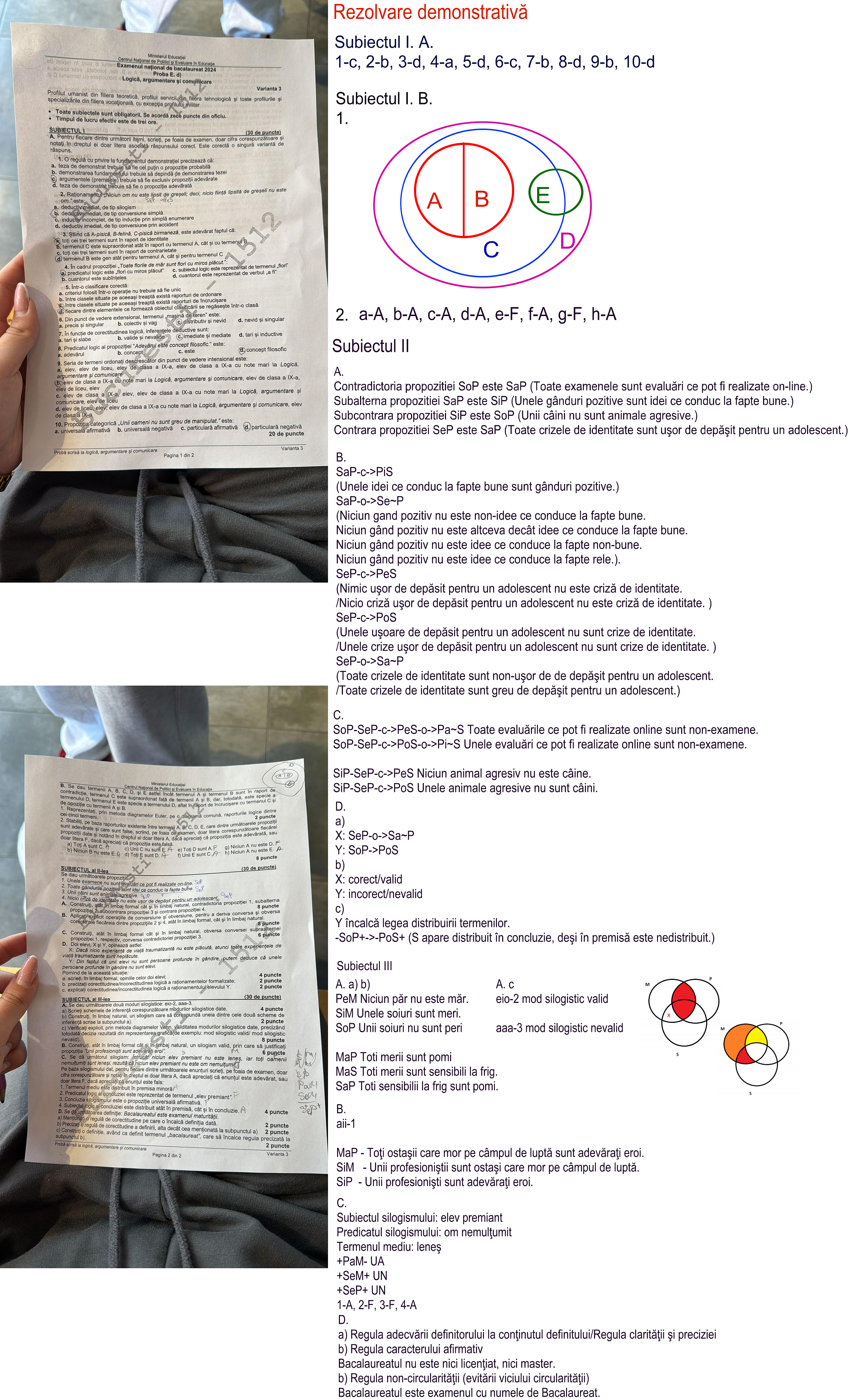 Rezolvare demonstrativă – Logică, argumentare și comunicare, Bac 2024 (sesiunea iunie-iulie)