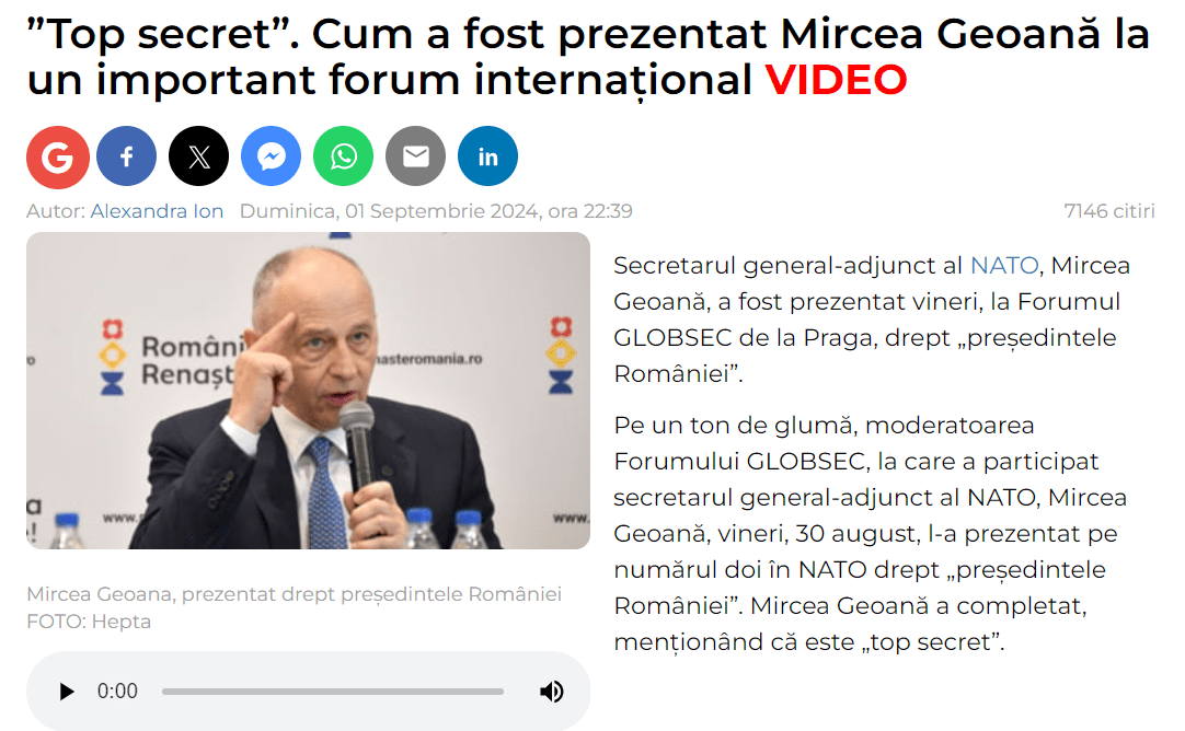 „Dar poate la fel de important este să înțelegem că România nu poate pretinde un loc de frunte pe scena externă fără o administrare transparentă și eficientă a resurselor sale interne.”
