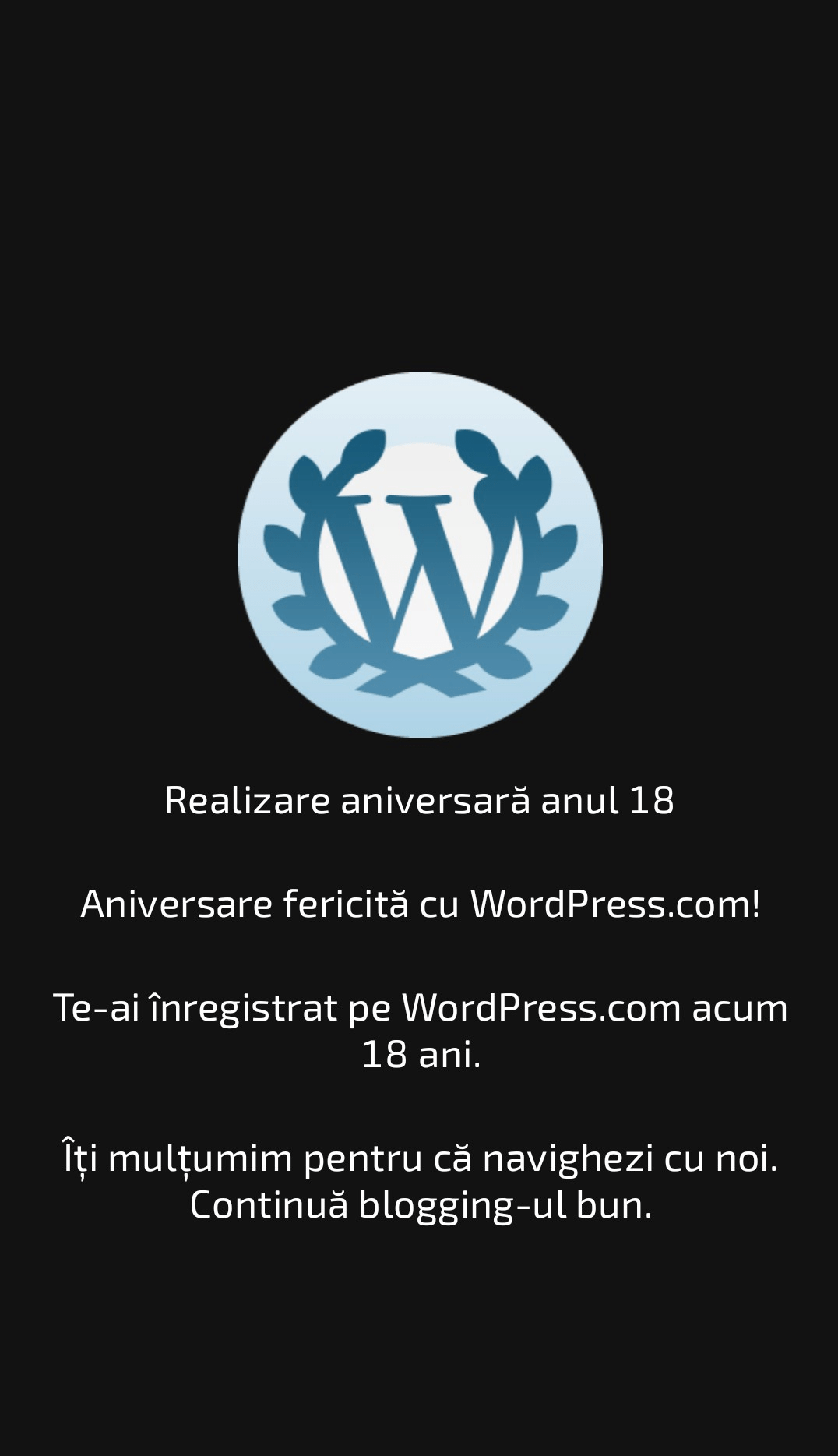 Un blog la majorat –  19 noiembrie – 18 ani de WordPress.com