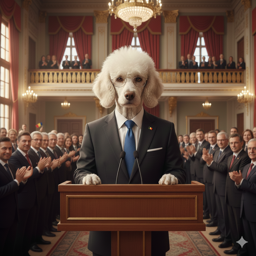 Zâmbește și se gudură pe lângă picioarele goale sau drapate cu finețuri neaustere, vădit impresionat de opulență și prisos. Urmărește privirile tuturor celor care-i dau atenție și le răspunde servil, ploconindu-se nedemn chiar și în fața celor care l-ar călca pe coadă. Latră subțire, de nu știi dacă miaună sau chițăie, diverse apostrofări naționale, în timp ce expune și validează corupția presei, corupția ong-urilor, corupția serviciilor, dar, mai presus de toate, corupția partidelor de cașcaval și de carnaval, cele care l-au urât și disprețuit, cele care l-au scuipat și ocărât, dar care acum îi servesc sărmăluțe de dulce pe timp de post și care îl lasă să urineze pe pantofii lor de firmă care ascund scumpa piele de canalie. Cu o candoare specifică sfinților sau idioților, reușește simultan să asmută jivinele mai fioroase asupra săracilor și sărăciilor, să se bucure de suferința împrăștiată în toată țara, dar să se și țină la distanță de grozăvia austerității, făcând băi de mulțime când paraziții risipesc furata bunăstare a mamelor, a pensionarilor și a copiilor, pe parade rușinoase, eșapamente poluante și meniuri șenilate. Obosit să tot lupte cu festivismul gol și înșelător al Găbiței, fi(e)re de virtute, i-a preluat obiceiurile și nu se dă înapoi de la nicio aroganță, uitând cu totul că prețul fastului pro-european se decontează pe durerile unui popor jupuit și surghiunit fără milă. Pudelul latră des, întotdeauna sentențios, pedalând în zile consecutive pe teme contradictorii: azi militează pentru înarmare, cu prețul sănătății și educației, mâine pledează pentru educație, cu prețul scârbei și al disprețului suveran, poimâine condamnă corupția, în timp ce își expune public toate falangele nesătule și dornice de pișcoteală pe banii altora. Dincolo de multiplele talente populare și impopulare ale pudelului președinte, arta sa supremă este, însă, arta de a promite. Nu trece o zi ca pudelul președinte să nu promită, fie numirea unor șefi la fruntea unor servicii eșuate în mercantilism, „în câteva săptămâni”, fie o analiză a efectelor măsurilor din educație, „după două luni”, fie publicarea stenogramelor din ședința CSAȚ în care s-a decis furarea turului doi, „curând” etc. În pofida acestor promisiuni, ministerele încap pe mâinile unor impostori, reformele sunt doar pentru căței, șefii din justiție își truchează concursurile, contractele cu presa tot secrete sunt, motoarele manipulării lucrează la turație maximă. După un an de guvernare „pro-europeană”, cu un președinte „pro-european”, nicio schimbare în năravul clasei politice de a servi sărăcie pentru cei mulți în schimbul îmbogățirii celor puțini. Nicio îmbunătățire a transprenței instituționale, nicio ameliorare a integrității în funcția publică, nicio politică orientată spre eficacitate administrativă, nicio digitalizare a serviciilor publice, nicio îmbunătățire a serviciului public. Oriunde privești, doar greve, oameni nemulțumiți, arbitrar decizional, politizare stearpă și corupție. Oriunde privești, doar exerciții de autoritate lipsite de legitimitate, îmbrobodeli și malversațiuni. Guvernul a ajuns un brici în mâna unei maimuțe, operând irațional cele mai nedrepte și abuzive amputări de drepturi și speranțe, dar risipind, cu inconștiență, festivism grețos și păgubos. Presa mainstream a devenit o latrină ecologică specializată în a transforma promiscuitatea în virtute, iar președintele pudel o frecventează simpatic. Puterea judecătorească glorifică spiritul infracțional, iar președintele pudel o linge pe bot. Faptul că pudelul și știuca se iubesc tandru, deși te-ai fi așteptat să se disprețuiască, legitimează din plin festivalul lupilor vii îmbrăcați în pieile unor oi moarte.