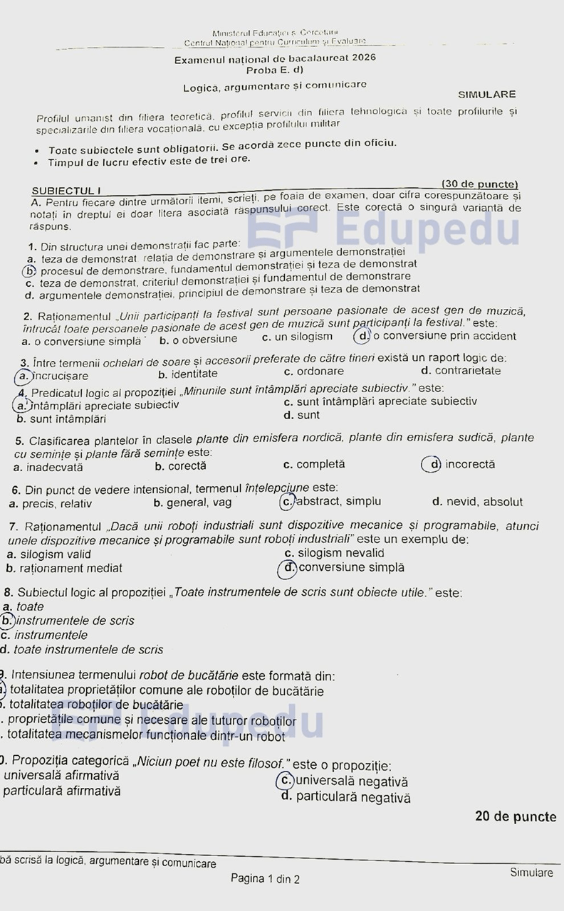 Rezolvare demonstrativă – Logică, argumentare și comunicare – Simulare 2026